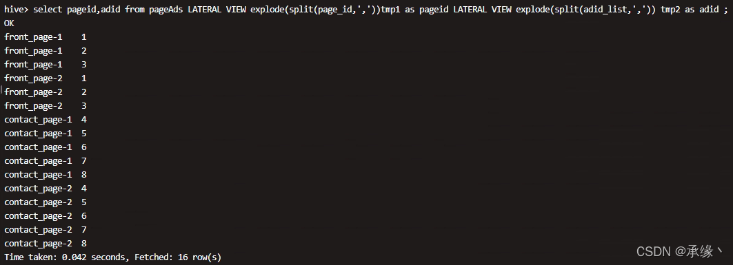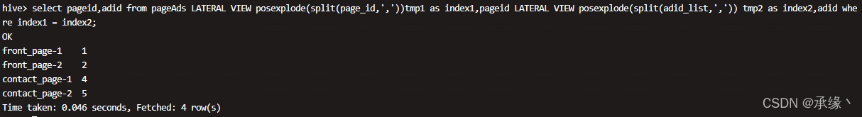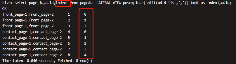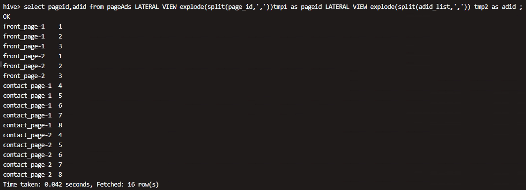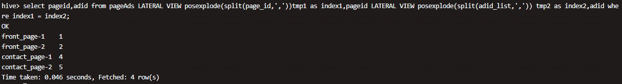 如果想要不要重复数据,也可以使用posexplode,然后加一个where条件,上面的数据不太合适,但是效果是相同的,几front_page-1给1,front_page-2给2,contact_page-1给4,contact_page-2给5: