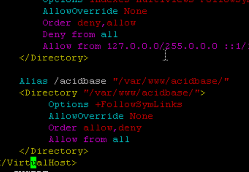 在文件底部</VirtualHost>一行之前加入acidbase相关内容(上图红框框部分)