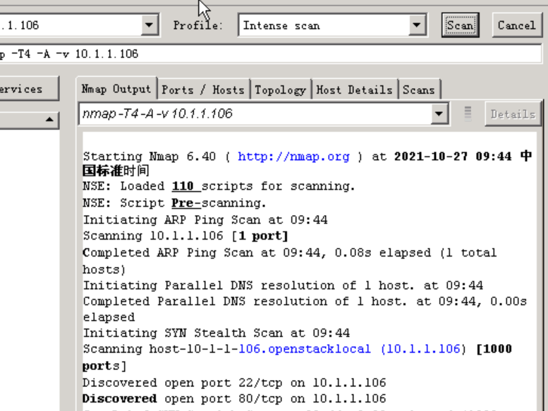 使用桌面上的nmap对ids主机进行端口扫描