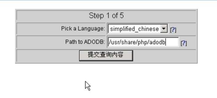 输入ADODB的路径“/usr/share/php/adodb”,单击提交按钮。