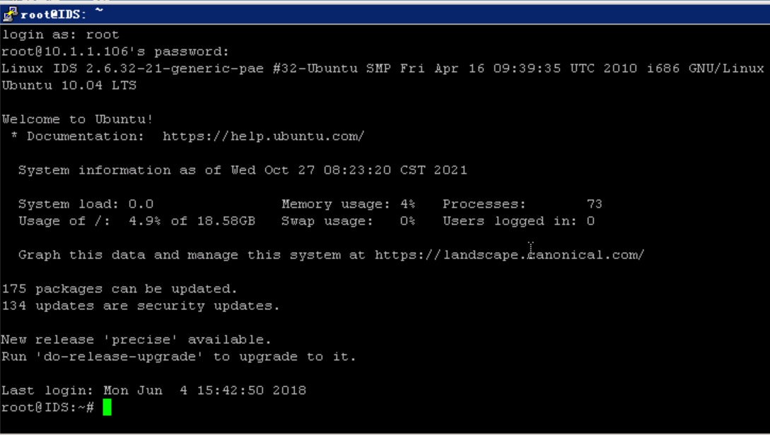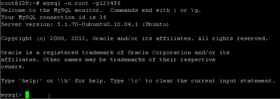 root@IDS:~# mysql -u root -p123456 #登录mysql