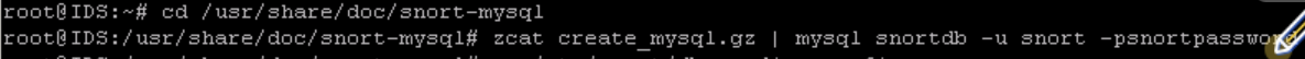 # zcat create_mysql.gz | mysql snortdb -u snort -psnortpassword