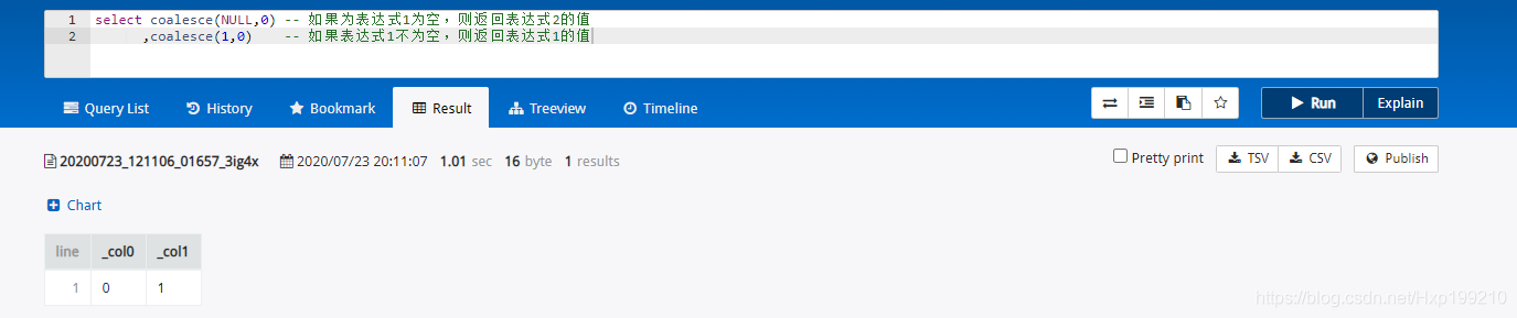 2.COALESCE(表达式1,表达式2,...,表达式n),适用于Presto