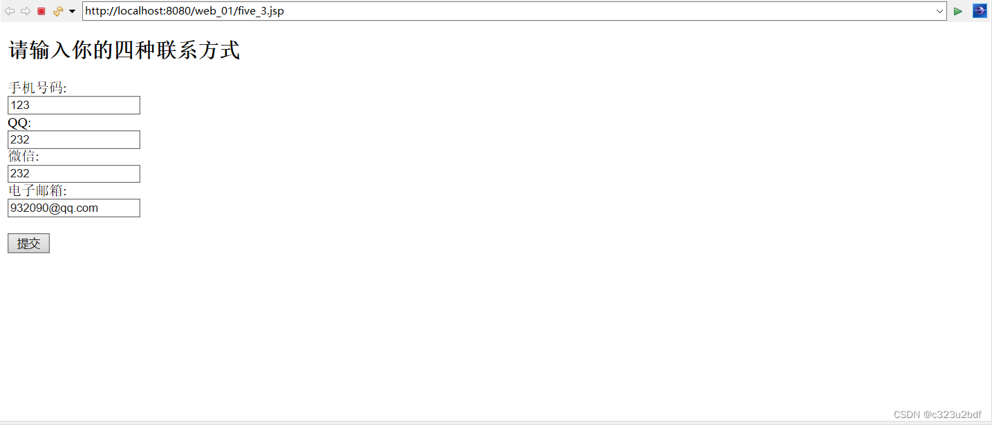 3、输入4种联系方式并进行提交,服务器端读取这些数据,并在页面上显示出来。