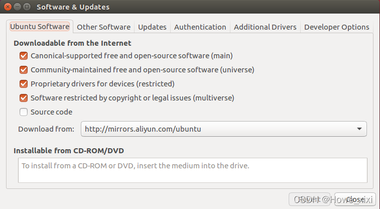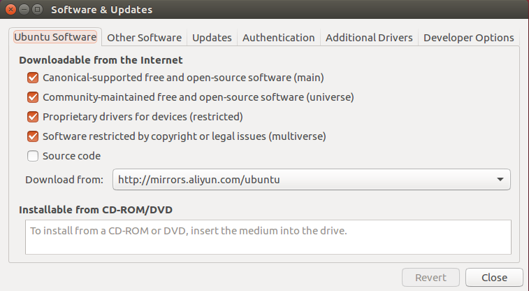 以软件源安装为例,首先需要配置Ubuntu系统允许restricted(不完全的自由软件)、universal(Ubuntu官方不提供支持与补丁,全靠社区支持)、multiverse(非自由软件,完全不提供支持和补丁)这三种软件源。如果没有对系统软件源做过修改,Ubuntu系统安装完毕后会默认允许以上三种软件源。