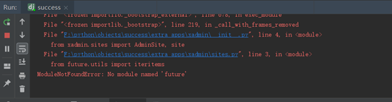 安装完成xadmin首先运行,会报如上的错误,提示是缺少future模块,实则不然,要安装的不是future这个模块,而是他的依赖模块输入下面的语句