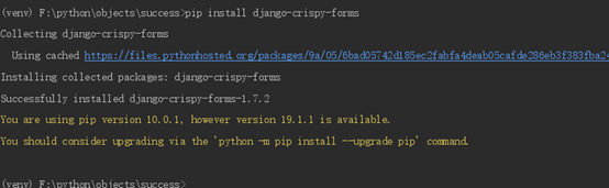 黄色的警告信息不用管,是提示更新pip的,暂时不要更新,以免出别的问题