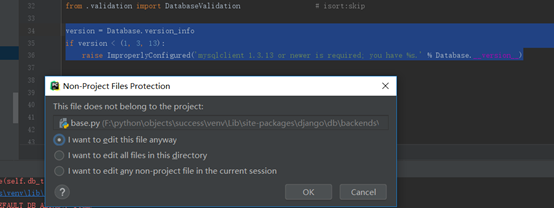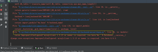 他是提示版本的,我们可以直接修改源码,点击图上最后哪个蓝色的报错信息段,跳到源码处将其注释。