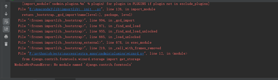 再运行,我提示的是这个错误,可能你在这之前就已经提示了这个错误,还是一样的,这是django下的包,继续装包吧。pip install django-formtools