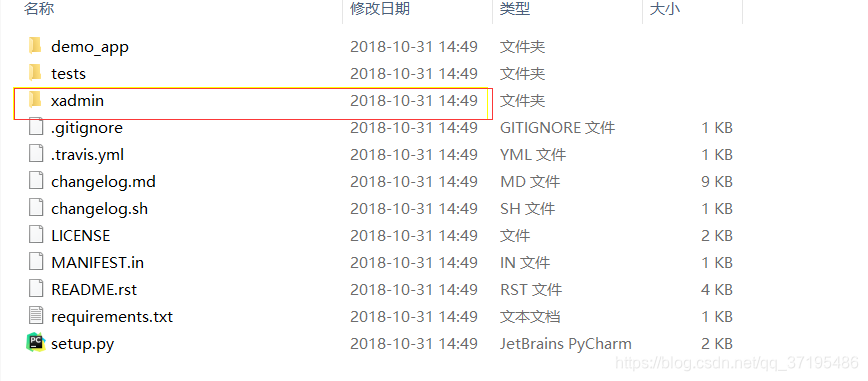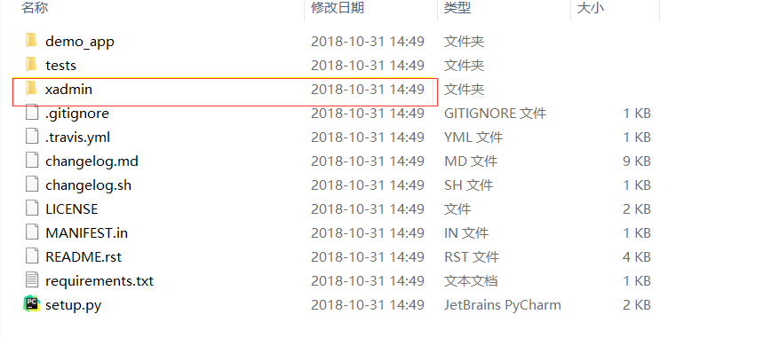 我这里没有提供xadmin。只是写了xadmin的安装过程,先要下载xadmin的源码到本地,一定要是xadmin2.0或以上的,django也是2.0或者以上,两者相配。下载下来的xadmin大概是这个样子。可以只取这部分,到你的项目中,新建一个extra_apps