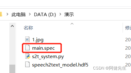 datas=[('1.jpg','.'),('speech2text_model.hdf5','.')], #"." 表示当前路径下
