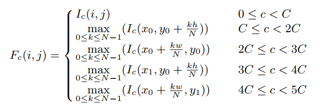 BorderAlign在操作过程中,若在( i , j ) (i, j)(i,j)处检测到Coarse Box,则进行如下操作得到BorderAlign的输出feature map: