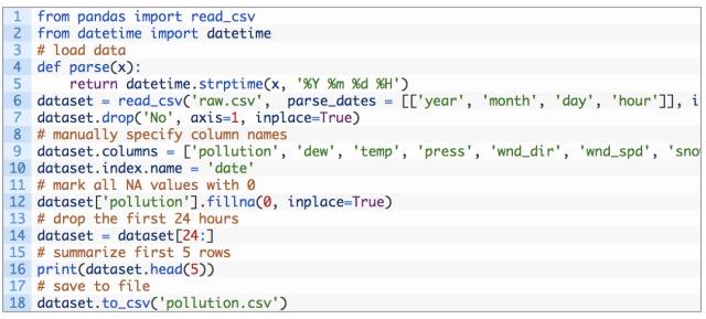 第一步是为 LSTM 模型准备污染数据集,这涉及将数据集用作监督学习问题以及输入变量归一化。