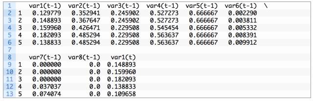 我们可以使用之前博客中编写的 series_to_supervised()函数来转换数据集: