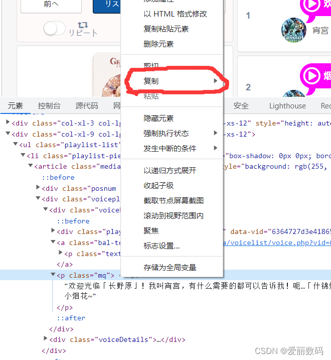 (3)在元素中右击-复制-复制Xpath路径,可以得到该名字的Xpath路径