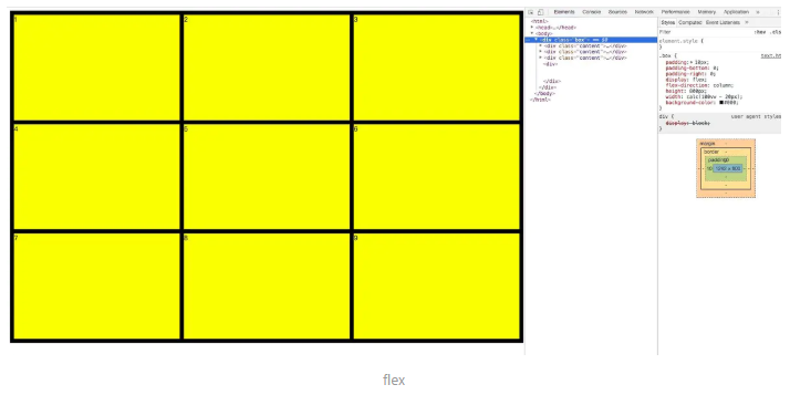 首先比较一下flex和grid实现自适应九宫格,高度800px,宽度适应: