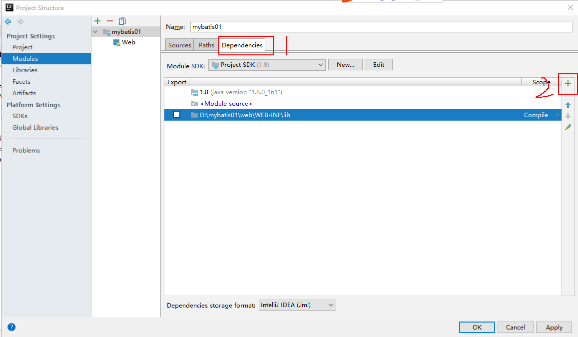 File-------->project structure-------->Modules------>Denpendencies,点击右边的加号,选择项目下的lib目录,选择jar directory,