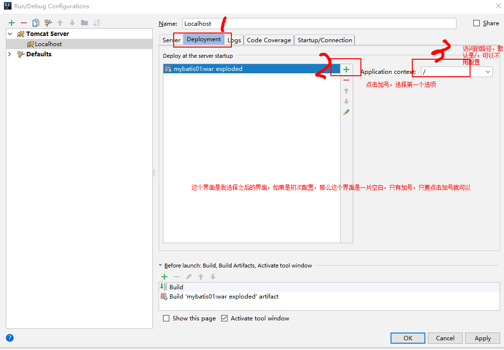 Run-------->Edit configuration 点击“+”号 -> 选择“Tomcat Server” -> 选择“Local” 生成的界面是这样的