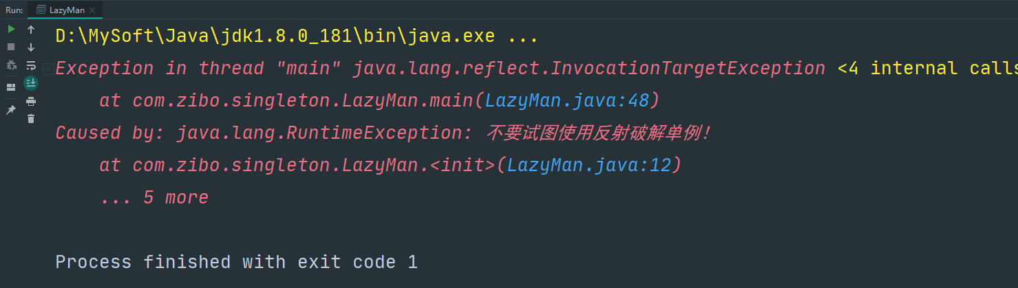 throw new RuntimeException("不要试图使用反射破解单例!");