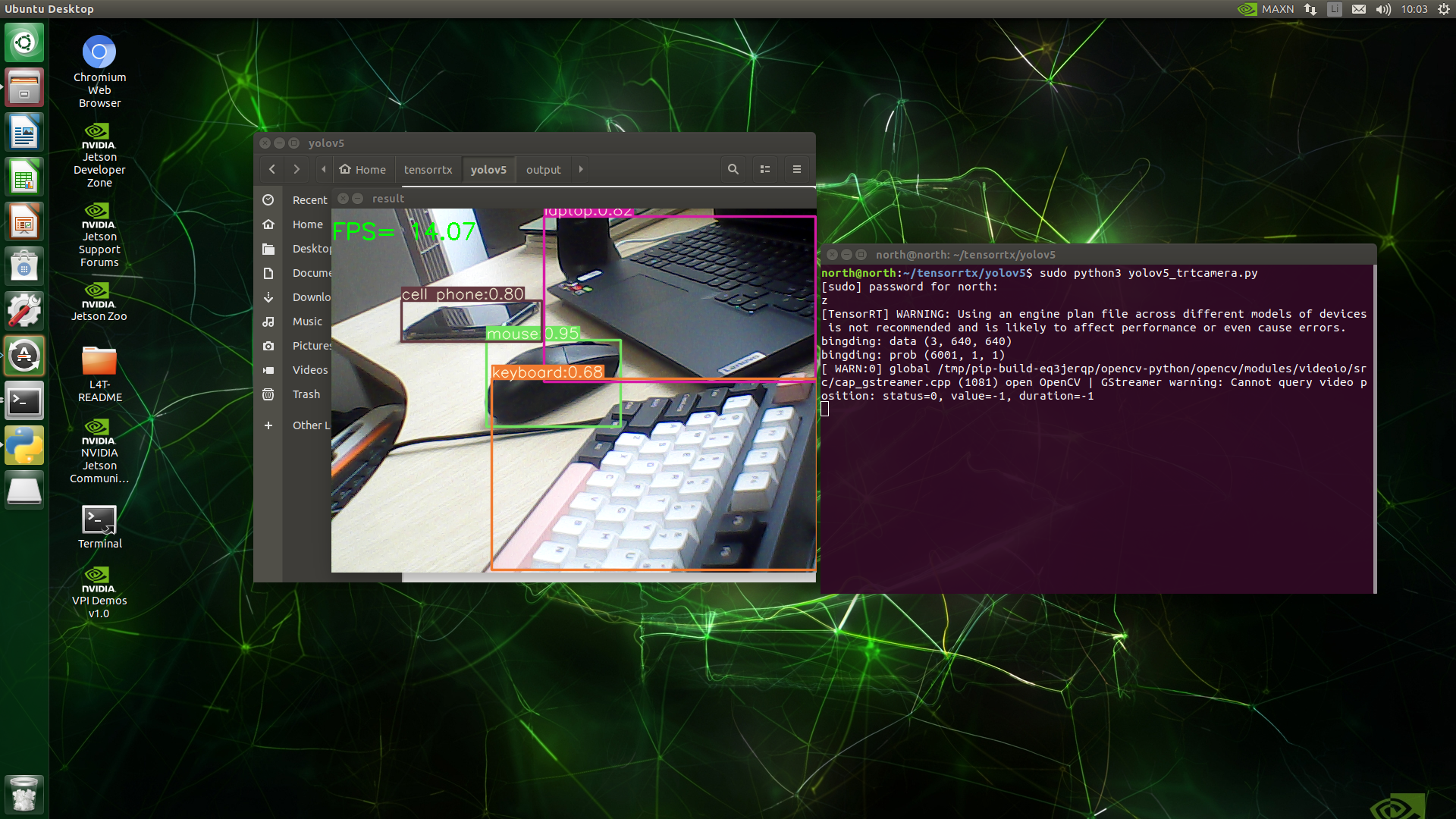 sudo python3 yolov5_trt.py