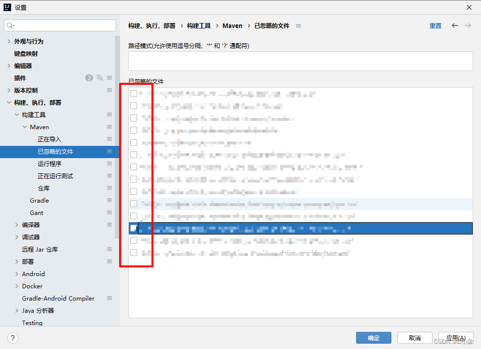 1、找到:文件--->设置--->构建、执行、部署--->构建工具--->Maven--->易忽略的文件