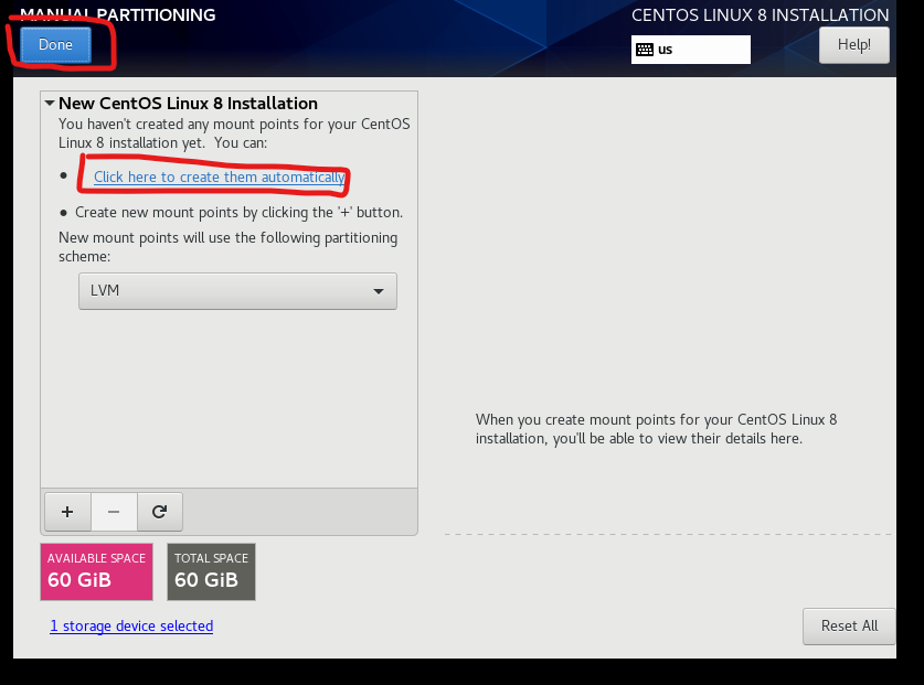 8.点击Click here to create them automatically给键盘进行分区