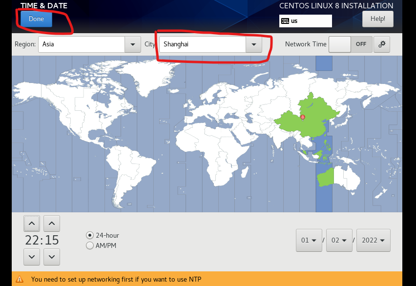 6.键盘和语言看个人爱好,时区为上海 ,时间为的当前时间,点击完成
