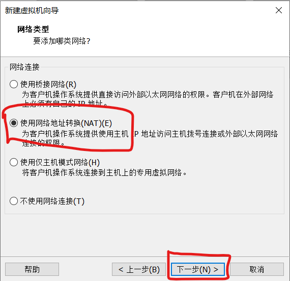 10.选择网络连接类型,具体的介绍按照参考,这里选择NAT,点击下一步