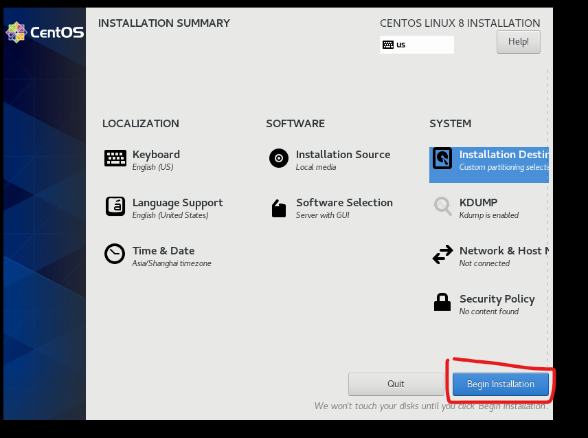 11.点击Begin Installation(开始安装)