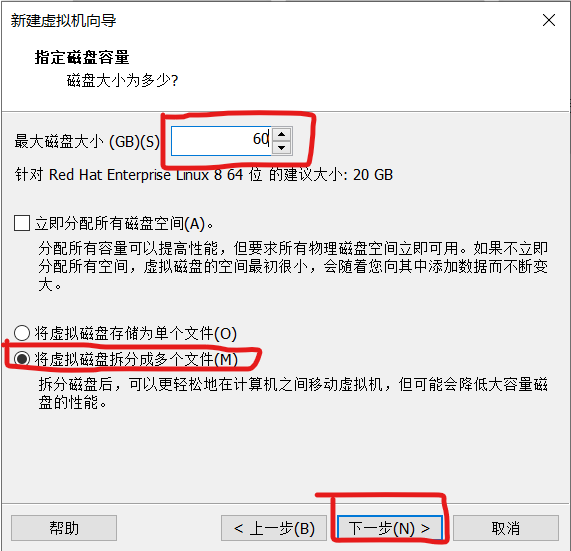 14.设置磁盘大小,根据自己的内存大小设置,其他默认,点击下一步