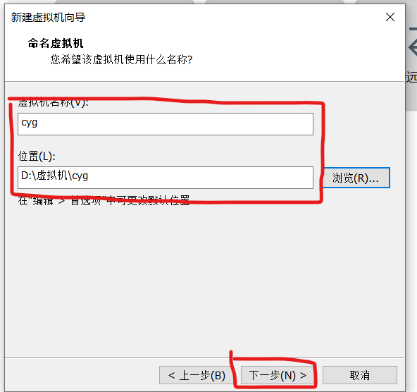 7.设置虚拟机的名称以及安装位置,点击下一步