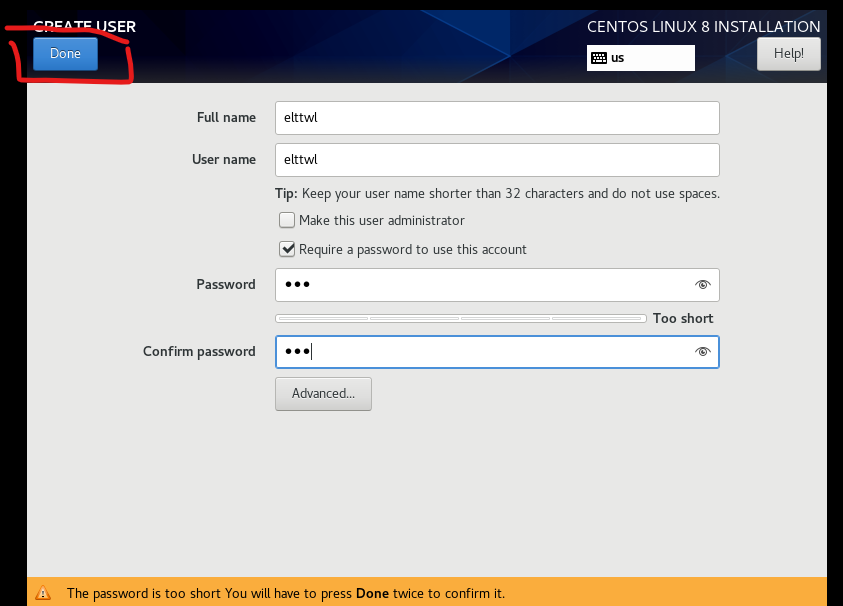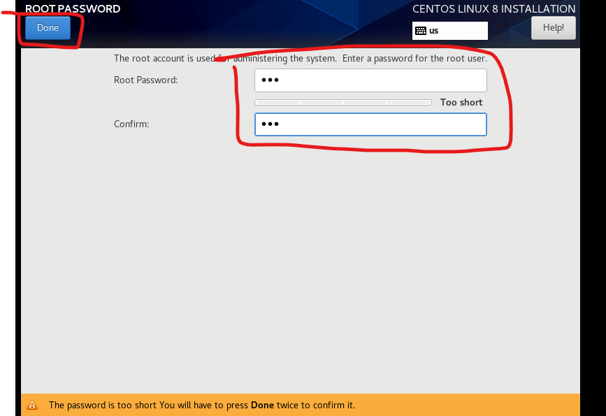 12.安装过程中,给用户Root设置密码,并创建一个普通用户