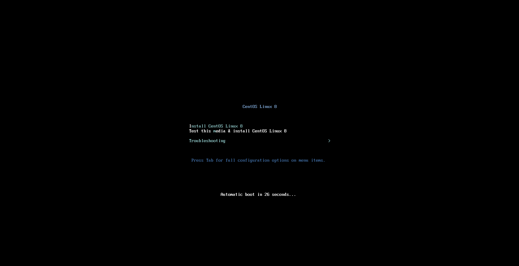 4.鼠标点进去,用键盘选择第一项,Install Red Hat Enterprise Linux 8.0.0。等待界面加载完成
