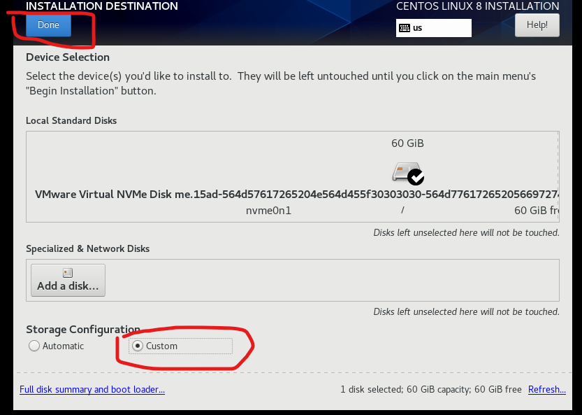 7.安装位置选择磁盘,选中Custom,点击确认更改磁盘