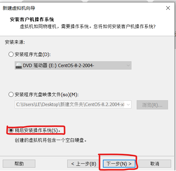 5.选择稍后安装操作系统,点击下一步