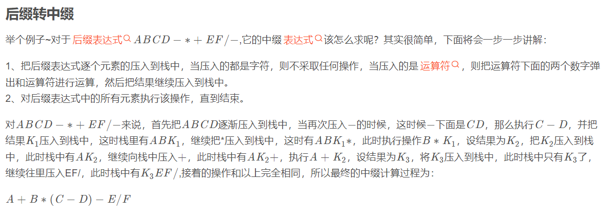 后缀表达式,指的是不包含括号,运算符放在两个运算对象的后面,所有的计算按运算符出现的顺序,严格从左向右进行(不再考虑运算符的优先规则)。