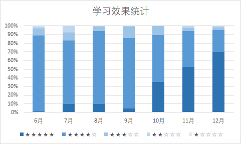 - 学习效果——五分制,纵向对比,根据与学习时长的加权平均值来衡量当月的学习效果