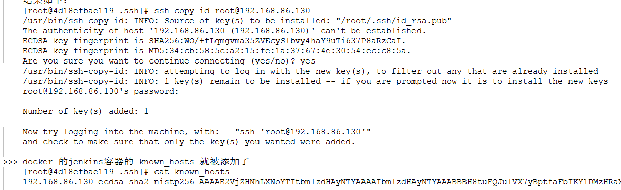 >> 3. Jenkins服务器中的公钥发送到应用服务器命令:ssh-copy-id root@192.168.86.130