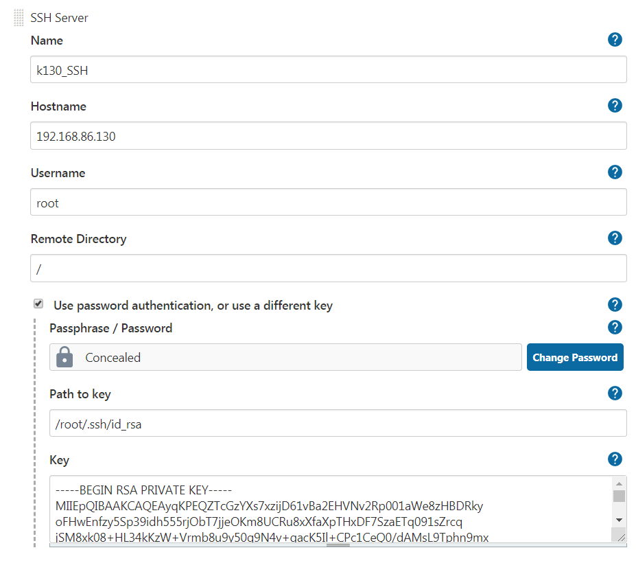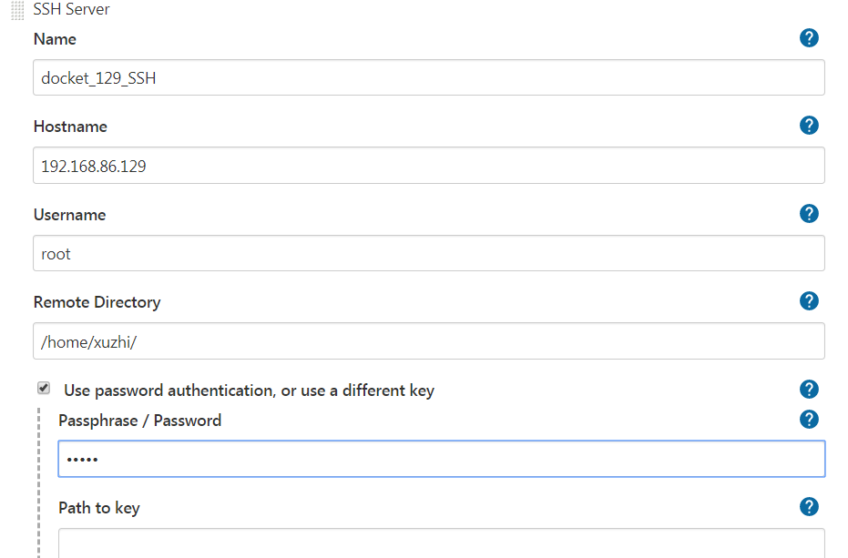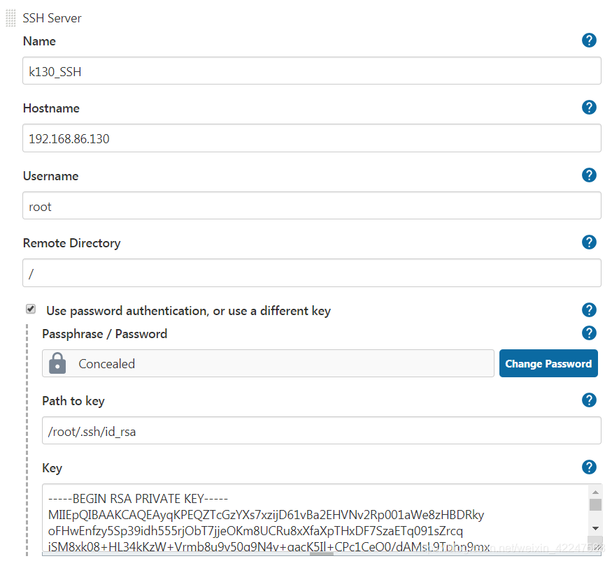 Passphrase/Password 填写 上面填写的账号(root)对应的密码。最好用root或者路径权限的用户。