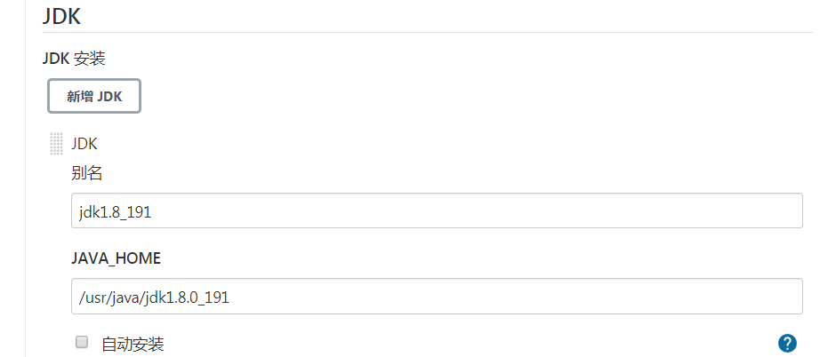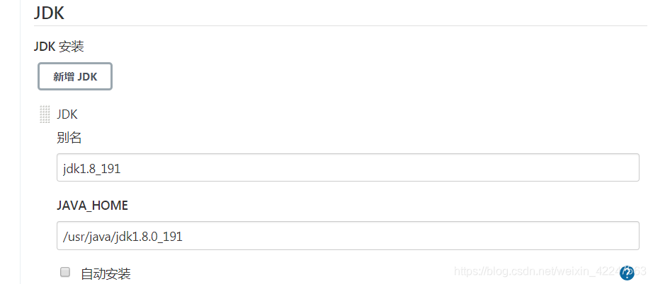> 新增JDK -> 挂载的 JAVA_HOME -> /usr/java/jdk1.8.0_191