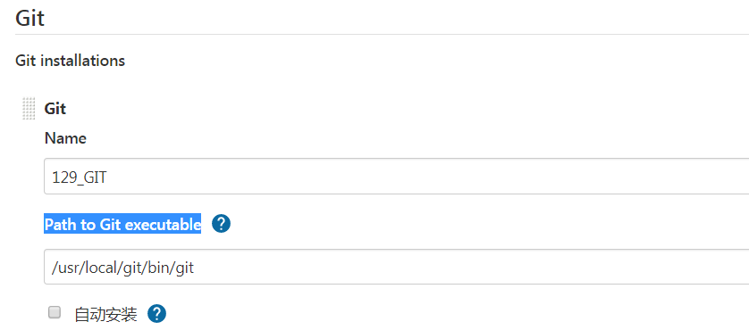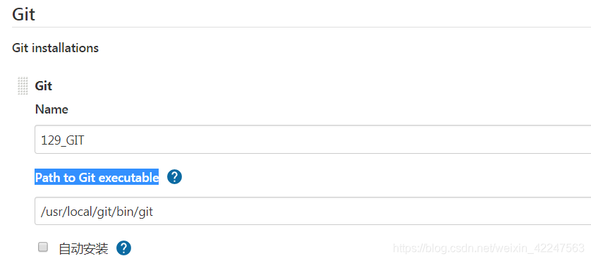 注:Jenkins全局配置GIT,配置服务器的git,不要使用自动安装的内置的 ,全局工具配置: