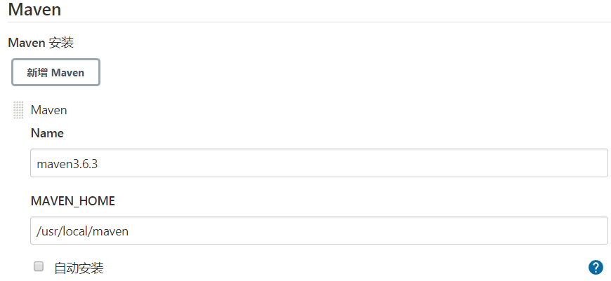 > 新增Maven -> 挂载的 MAVEN_HOME -> /var/jenkins_home