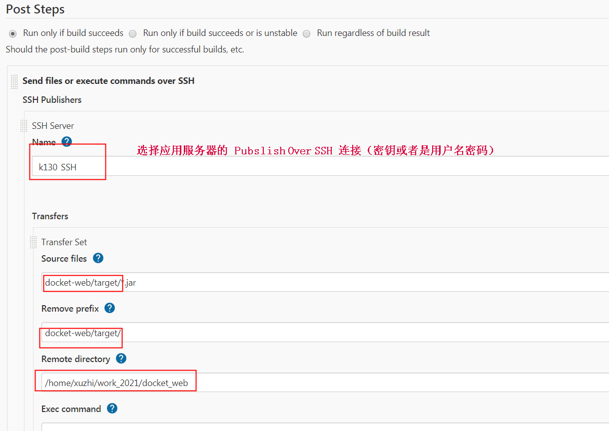 >> 8.2系统配置主要是配置连接应用服务器的SSH免密或者账号信息Publish Over SSH模块、