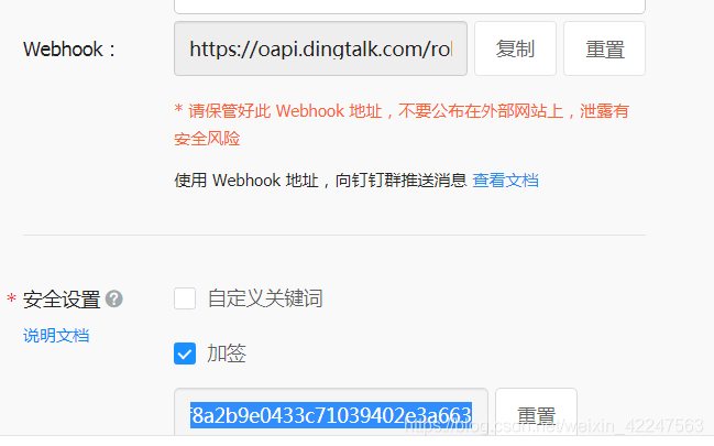 安全策略推荐使用 加密方法 不推荐关键字、这里的 加密 对应 钉钉中的加签