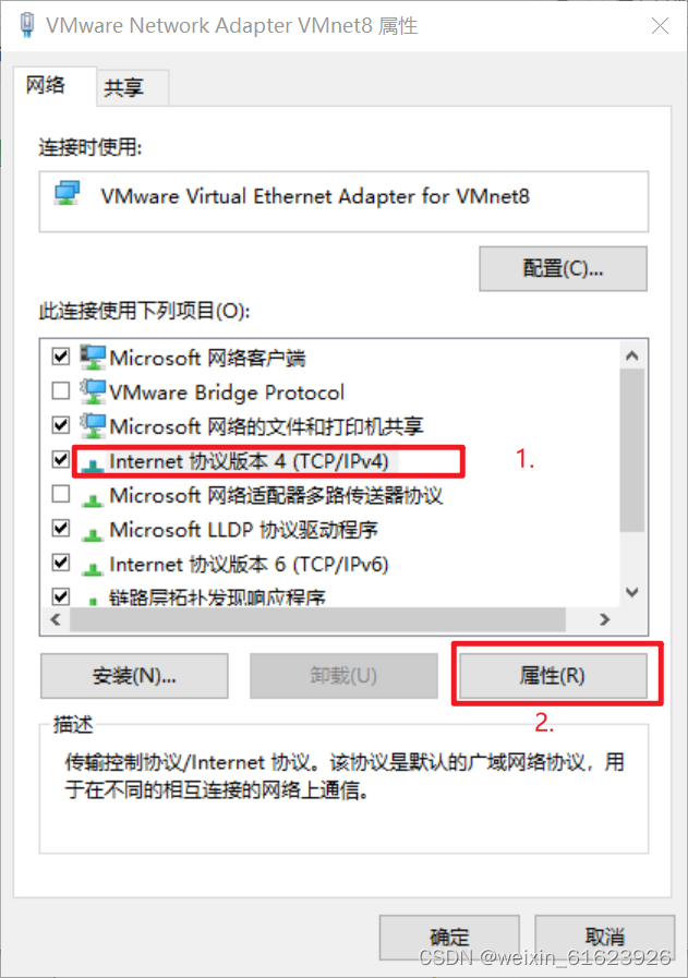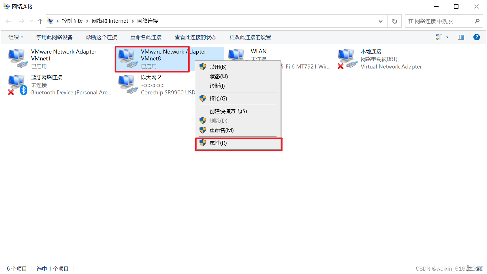 5.选中VMnet8,右击,选择属性