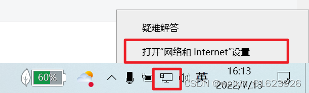 4.右击网络图标,点击打开网络和Internet设置