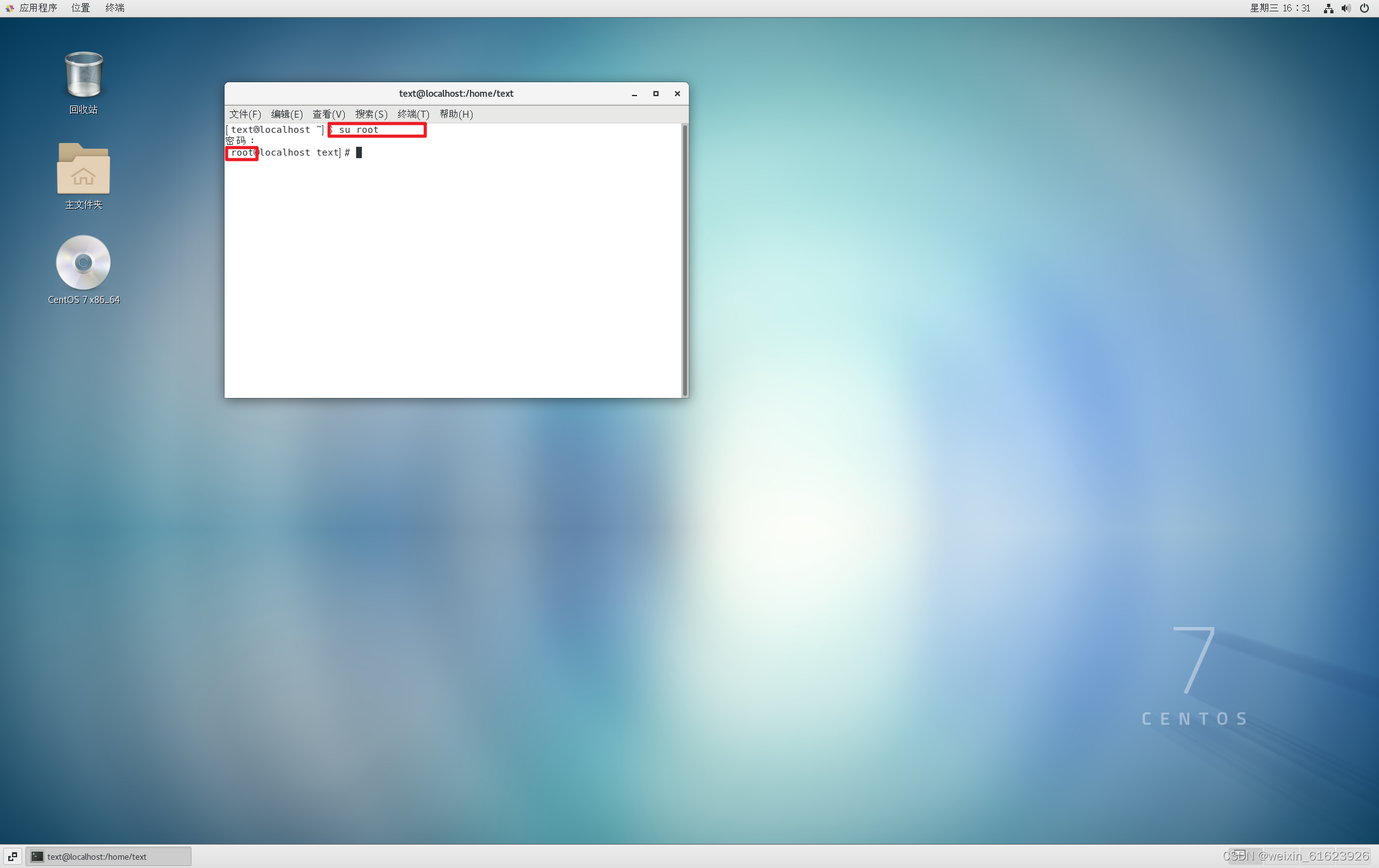 9. 输入su root,切换root用户
