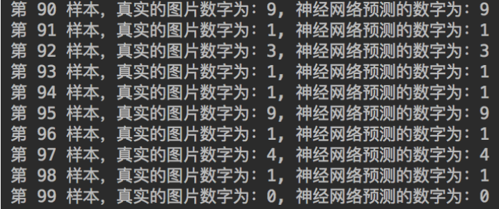 print("第 %d 样本,真实的图片数字为:%d, 神经网络预测的数字为:%d " % (