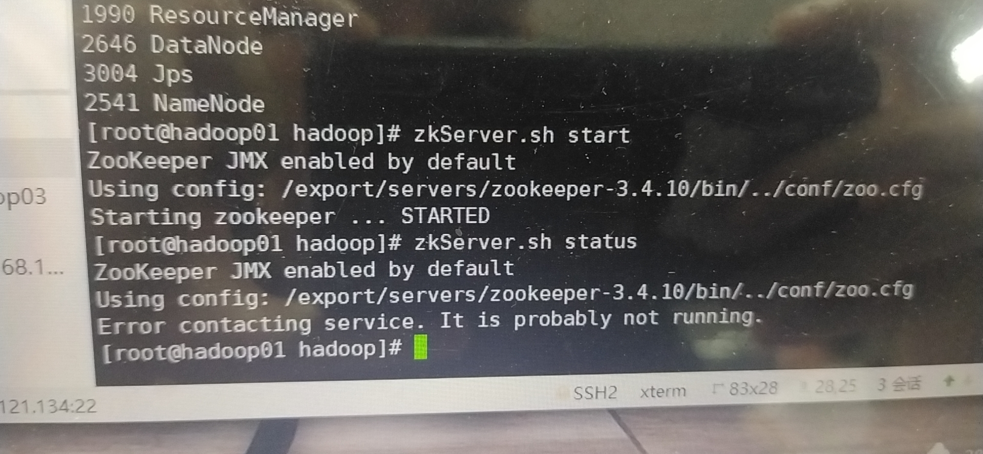 启动zookeeper集群,发现查看状态错误会出现哪些原因,可先查看日志,确定问题