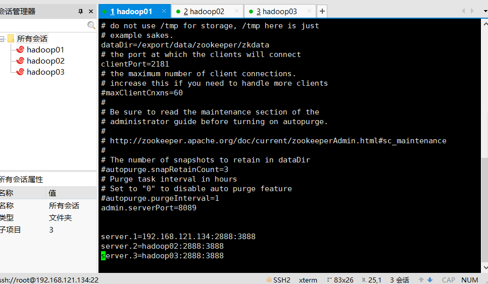 4.zoo.cfg文件配置出错:dataLogDir指定的目录未被创建;在zoo.cfg中